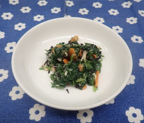 ①ほうれん草は茹でてから、流水にかけ2㎝くらいに切る