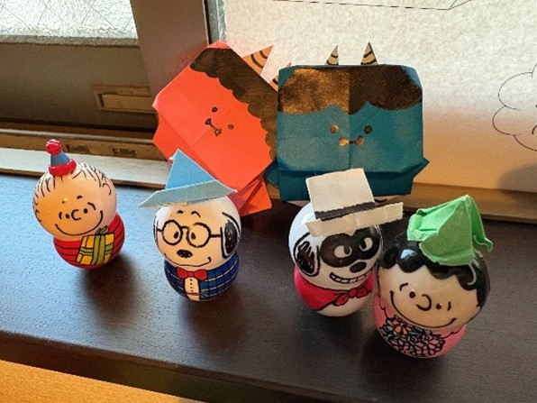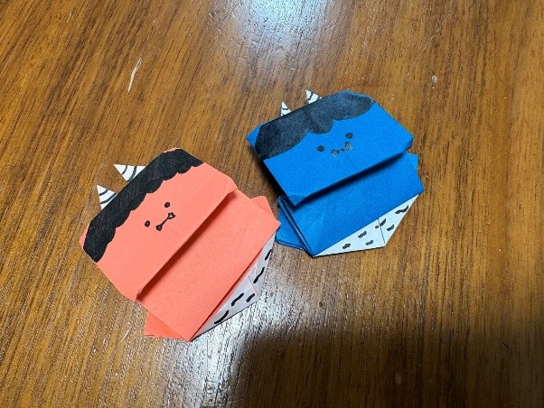 私が室内に飾る鬼の折り紙を作っていると、