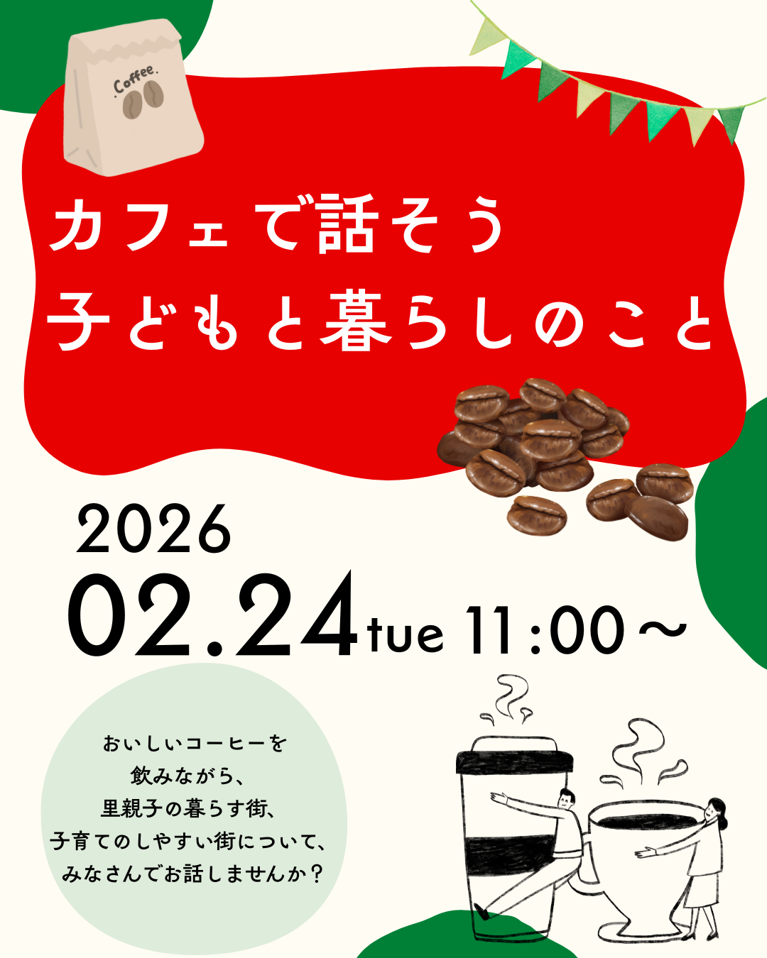 美味しいコーヒーを飲みながら、里親子の暮らしやすい街、子育てのしやすい街について、一緒にお話しませんか?