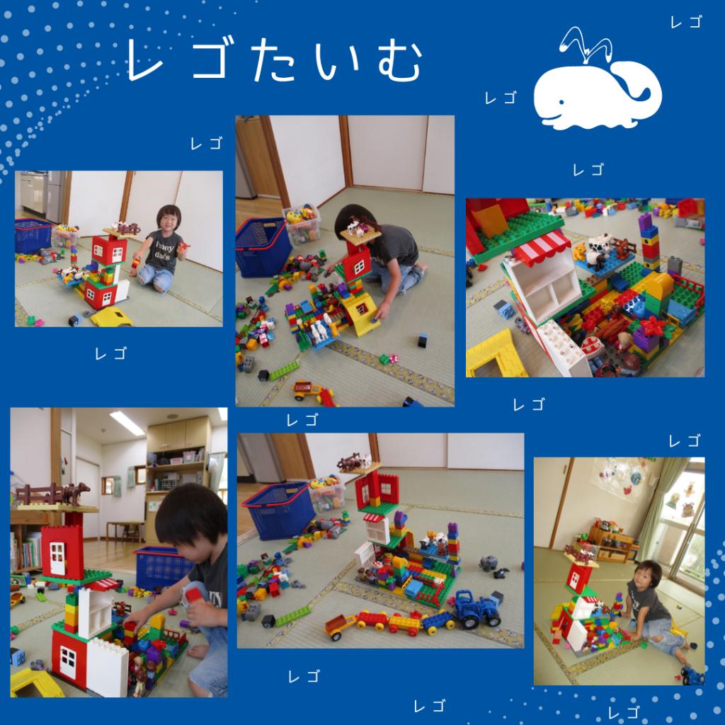 一時保育室のある日のご様子。小さい子がお昼寝でじっくりレゴに取り組めた日。。。4階建ての大作ができました!