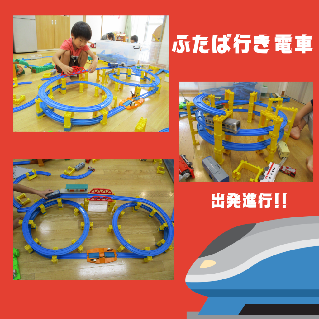 6歳になるお友だちが遊びにきてくれました。他のお友だちとプラレールで遊んでいると、写真を見ながら『これ作りたい』とかっこいいふたば行き電車を作ってくれました。