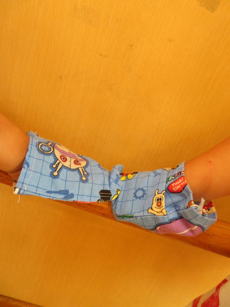 「一緒にやるの」と言ってお気に入りのアンパンマンのミニぞうきんを装着☆